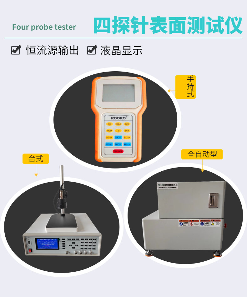 2.硅晶块、晶片电阻率及扩散层、外延层、ITO导电箔膜、导电橡胶等材料方块电阻 半导体材料/晶圆、太阳能电池、电子元器件,导电薄膜(ITO导电膜玻璃等),金属膜,导电漆膜,蒸发铝膜,PCB铜箔膜,